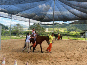 Realizadas de segunda a quinta-feira, as sessões utilizam o cavalo como ferramenta terapêutica para estimular o desenvolvimento físico, emocional e cognitivo dos participantes. Atualmente, cerca de 360 crianças são atendidas, e o programa já alcançou aproximadamente quatro mil pessoas ao longo de mais de uma década de funcionamento.