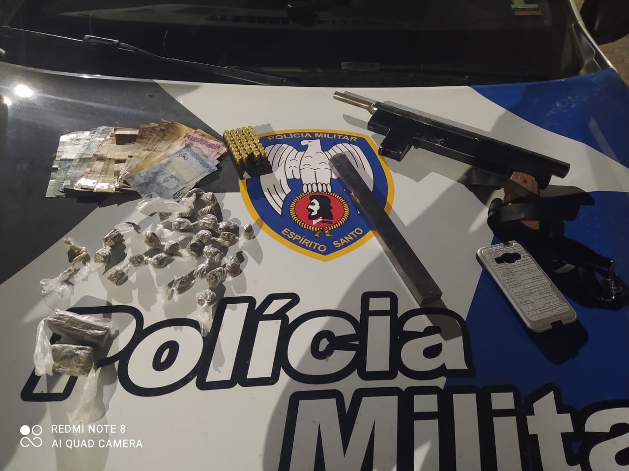 Policiais Militares da 3° Companhia do 2° Batalhão com o apoio do 8° BPM apreenderam na noite de sábado (24), uma submetralhadora de fabricação caseira, dois pedaços de maconha, 26 buchas da mesma substância, cinco pedras de crack, 39 munições, além de R$ 2034,00 reais em espécie proveniente do tráfico, durante a Operação Força Tarefa III, em São Gabriel da Palha. Um adolescente de 15 anos foi apreendido durante a ação.